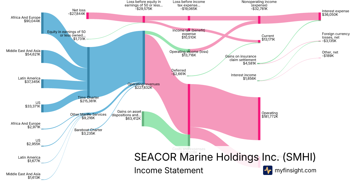 For the year ending 2025-12-31, SMHI made $227,832K in revenue. -$27,844K in net income. Net profit margin of -12.22%.
