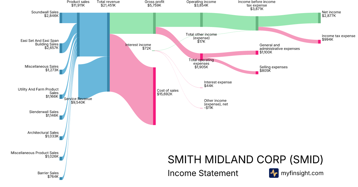 For the quarter ending 2025-09-30, SMID made $21,451K in revenue. $2,877K in net income. Net profit margin of 13.41%.