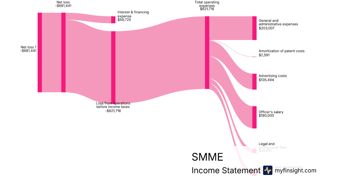 For the year ending 2024-06-30, SMME made $621,716 in revenue. -$681,441 in net income. Net profit margin of -109.61%.