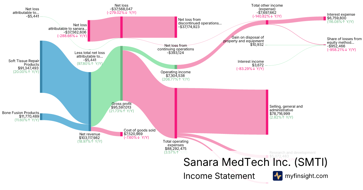 For the year ending 2025-12-31, SMTI made $103,117,982 in revenue. -$37,562,606 in net income. Net profit margin of -36.43%.
