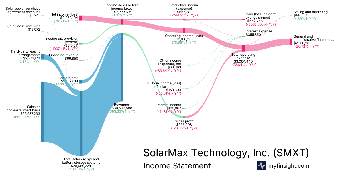 For the quarter ending 2025-09-30, SMXT made $30,602,588 in revenue. -$2,258,104 in net income. Net profit margin of -7.38%.