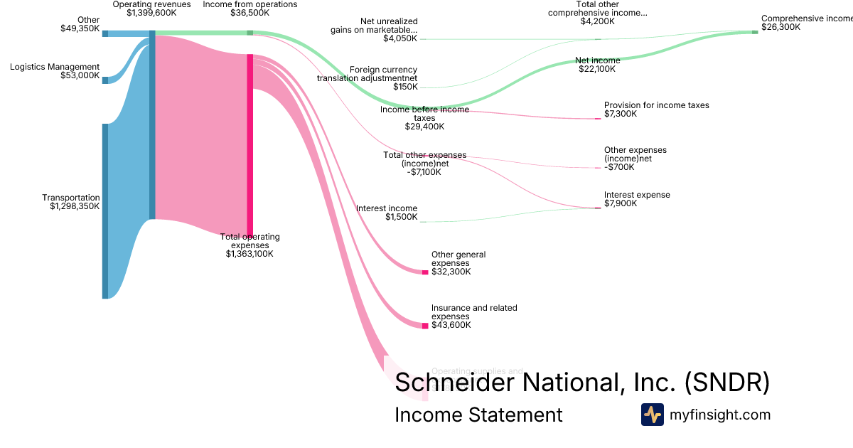 For the year ending 2025-12-31, SNDR made $5,674,300K in revenue. $105,500K in net income. Net profit margin of 1.86%.