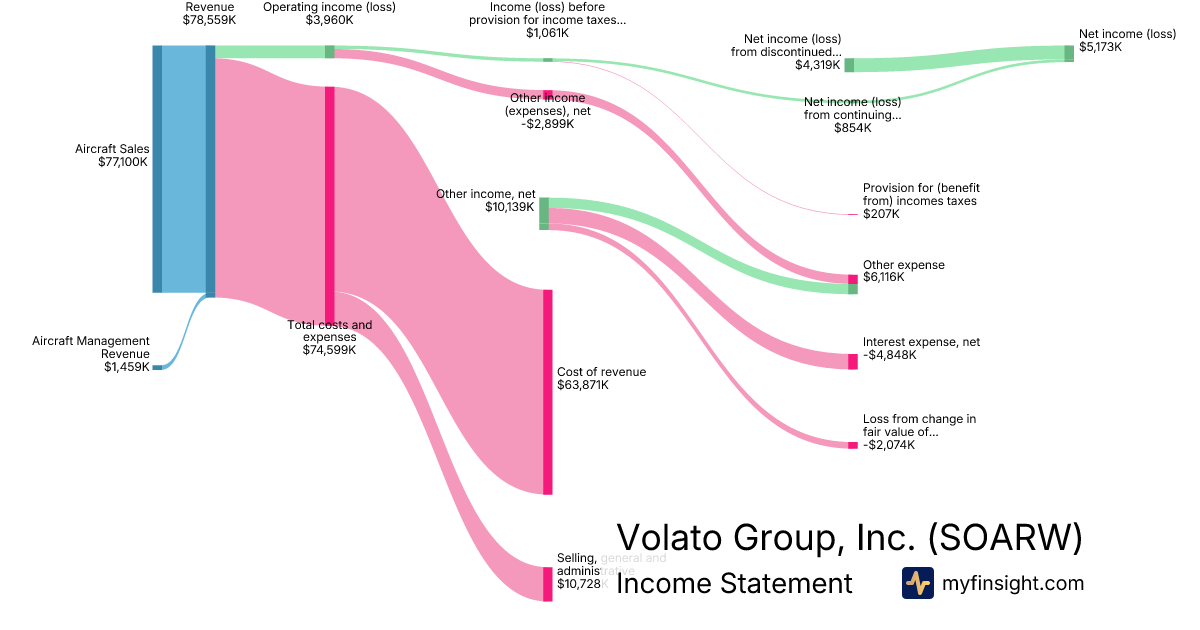 For the year ending 2025-12-31, SOARW made $78,559K in revenue. $5,173K in net income. Net profit margin of 6.58%.