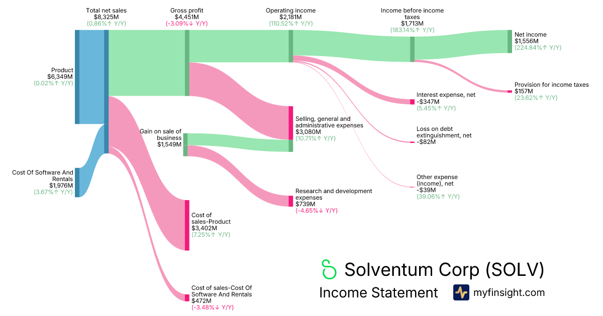 For the year ending 2025-12-31, SOLV made $8,325M in revenue. $1,556M in net income. Net profit margin of 18.69%.