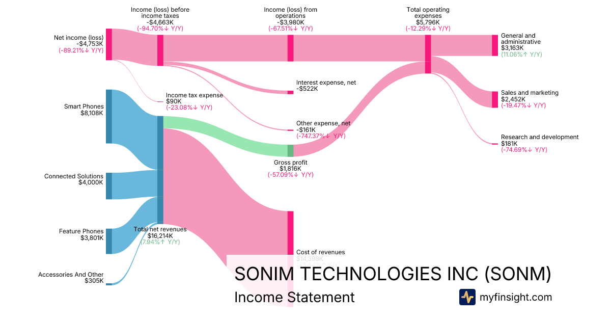 For the quarter ending 2025-09-30, SONM made $16,214K in revenue. -$4,753K in net income. Net profit margin of -29.31%.