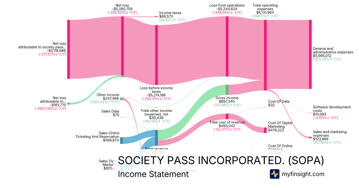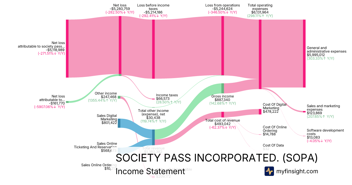 For the quarter ending 2025-09-30, SOPA made $1,380,382 in revenue. -$5,118,989 in net income. Net profit margin of -370.84%.