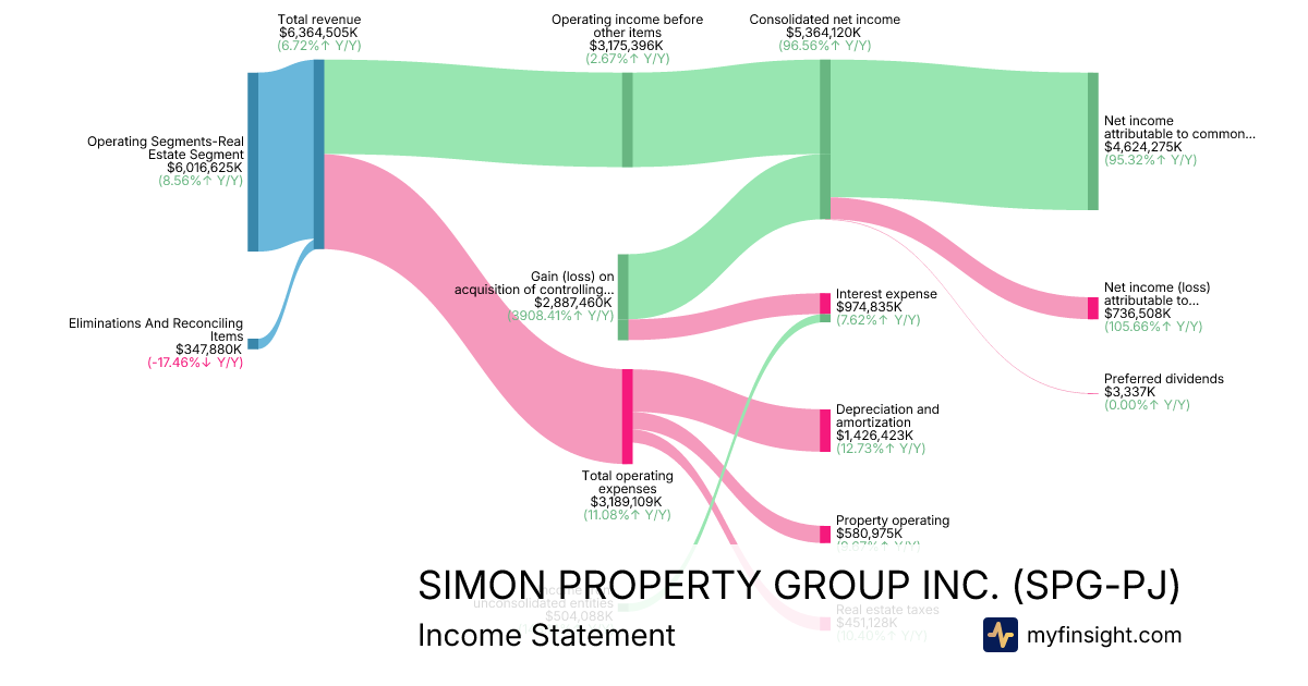For the year ending 2025-12-31, SPG-PJ made $6,364,505K in revenue. $4,624,275K in net income. Net profit margin of 72.66%.