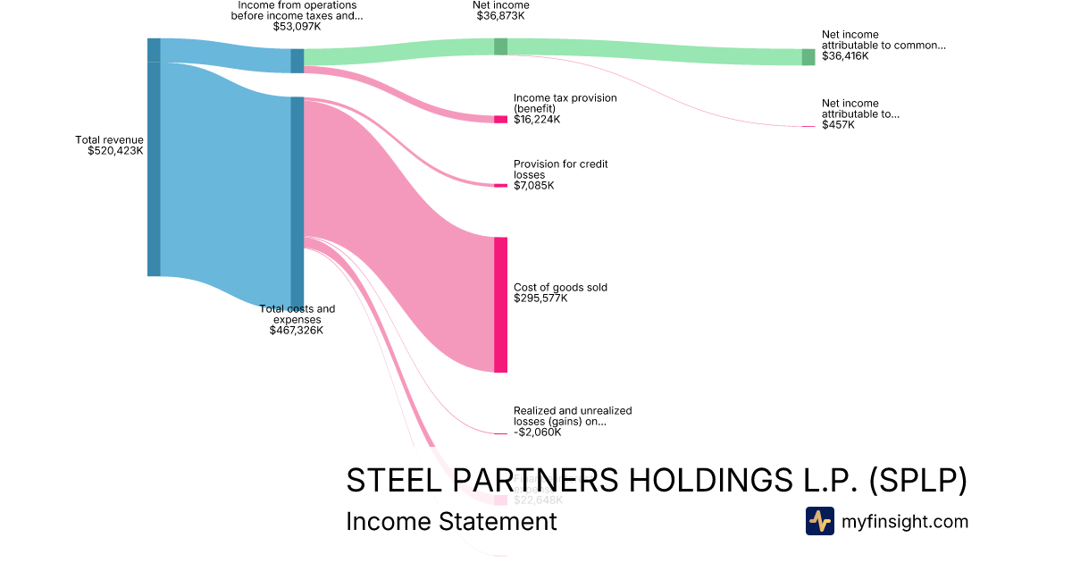 For the quarter ending 2024-09-30, SPLP made $520,423K in revenue. $36,416K in net income. Net profit margin of 7.00%.