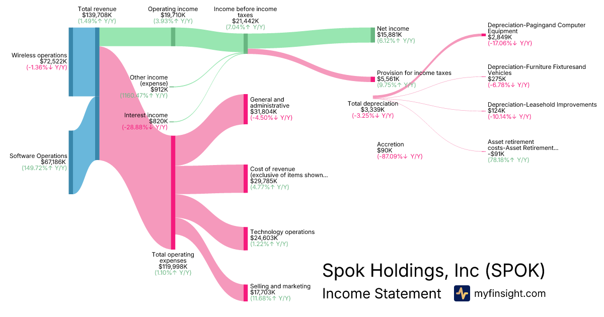For the year ending 2025-12-31, SPOK made $139,708K in revenue. $15,881K in net income. Net profit margin of 11.37%.