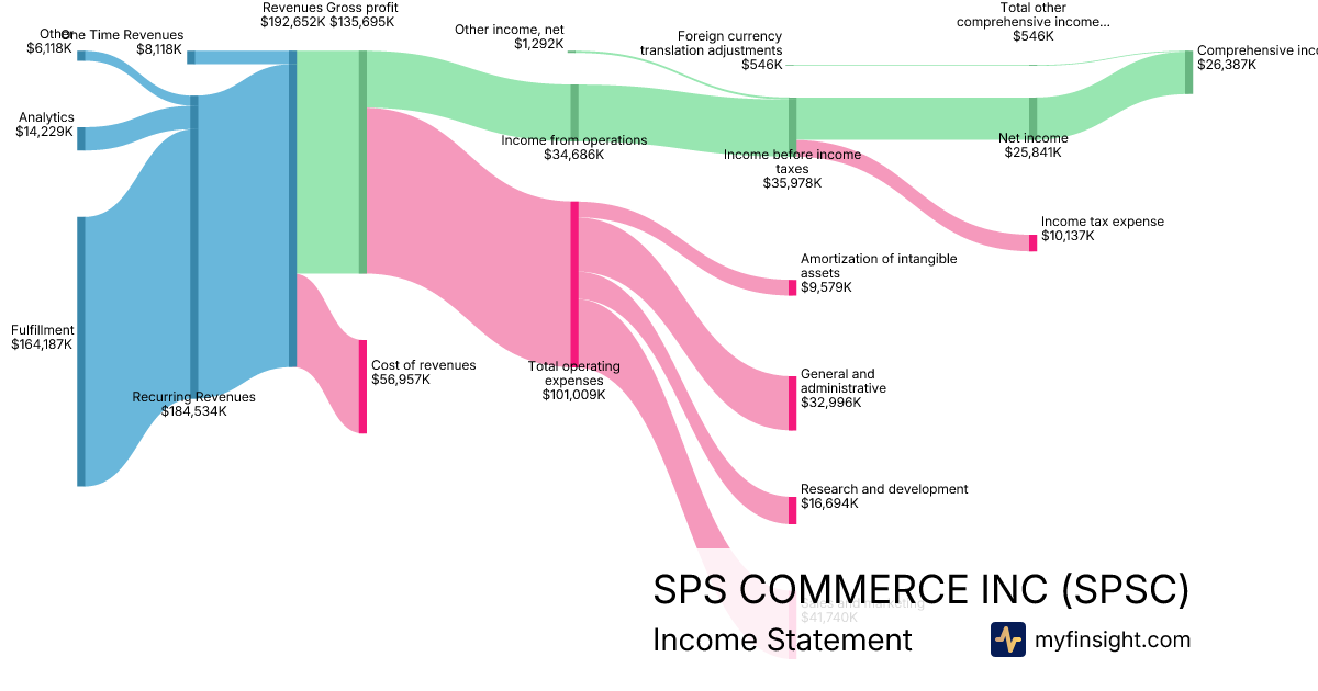 For the year ending 2025-12-31, SPSC made $751,505K in revenue. $102,649K in net income. Net profit margin of 13.66%.