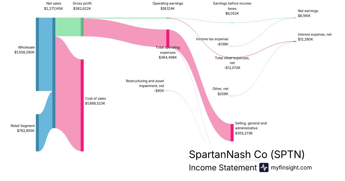 For the quarter ending 2025-07-12, SPTN made $2,271,145K in revenue. $6,190K in net income. Net profit margin of 0.27%.