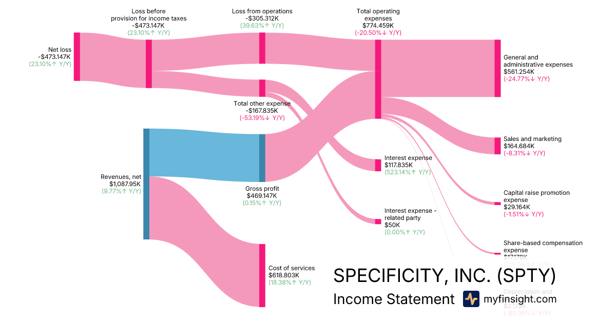 For the year ending 2025-12-31, SPTY made $1,087.95K in revenue. -$473.147K in net income. Net profit margin of -43.49%.