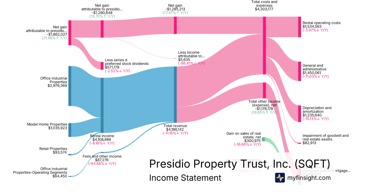 For the quarter ending 2025-09-30, SQFT made $4,196,142 in revenue. -$1,862,027 in net income. Net profit margin of -44.37%.