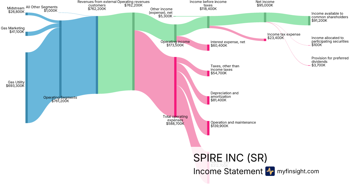 For the quarter ending 2025-12-31, SR made $762,200K in revenue. $91,200K in net income. Net profit margin of 11.97%.