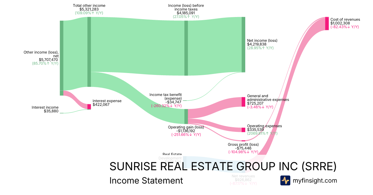 For the quarter ending 2025-09-30, SRRE made $926,862 in revenue. $4,219,838 in net income. Net profit margin of 455.28%.