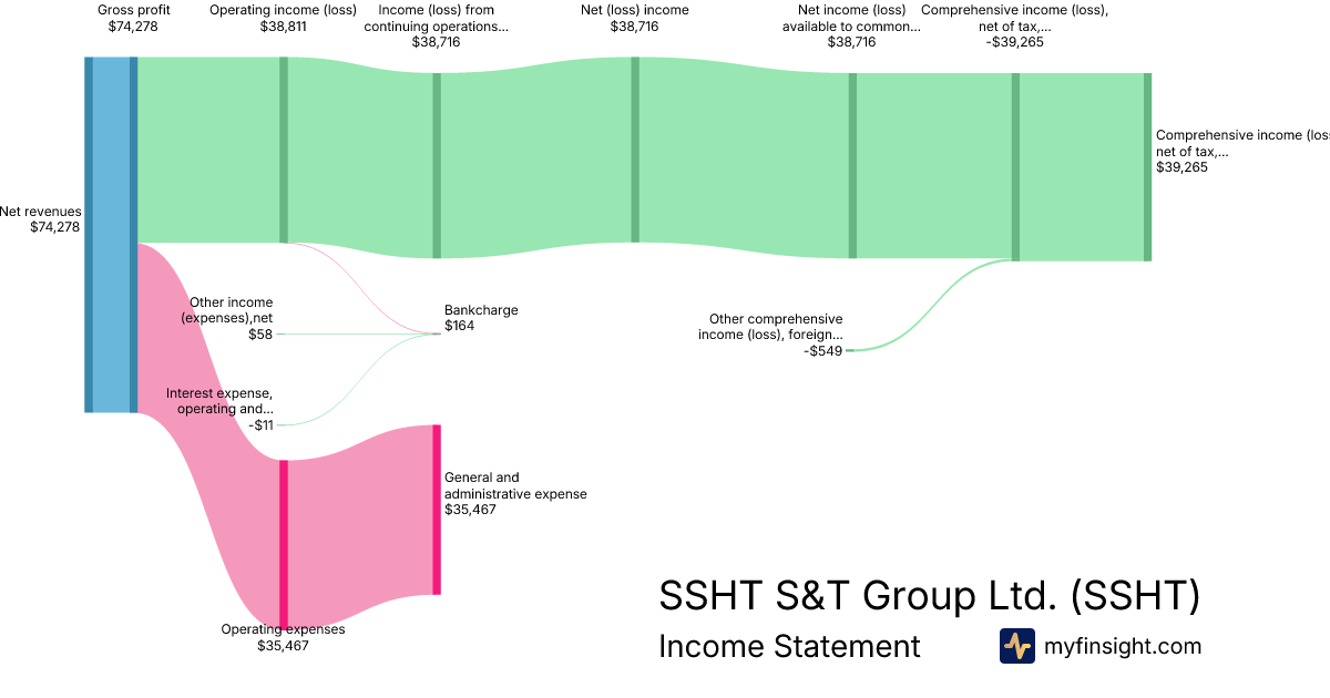 For the quarter ending 2024-09-30, SSHT made $74,278 in revenue. $39,265 in net income. Net profit margin of 52.86%.