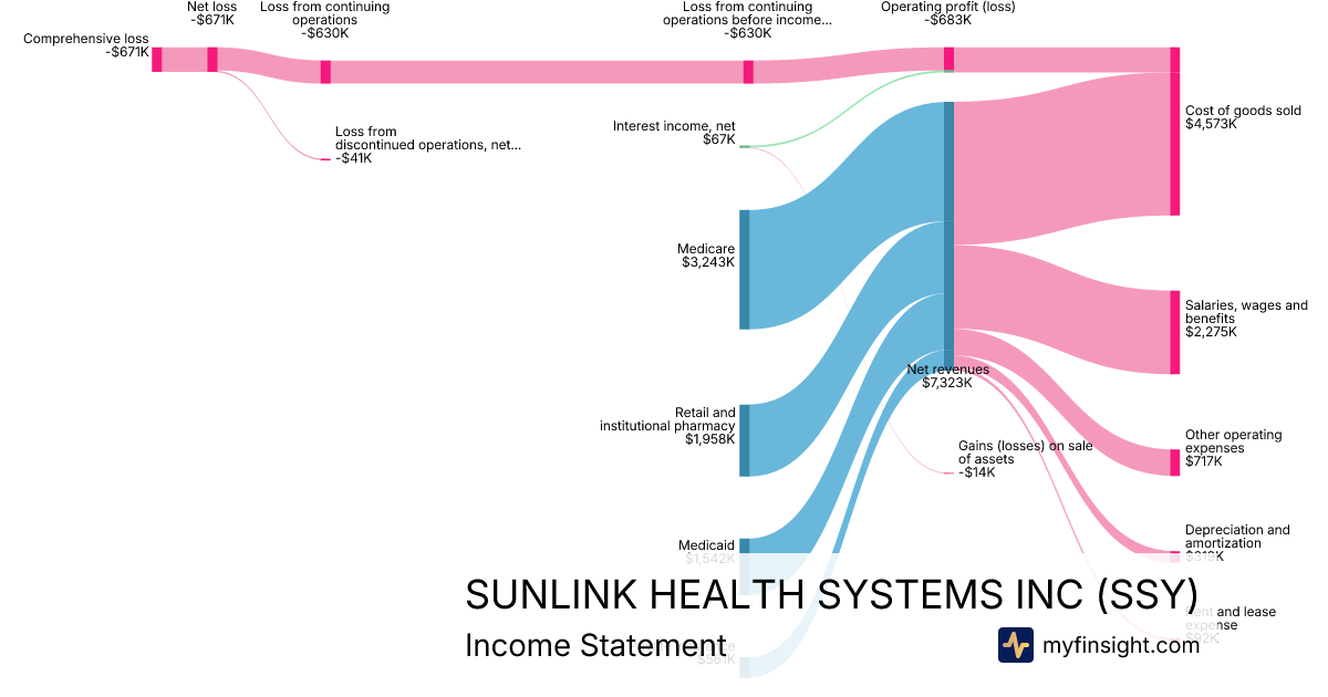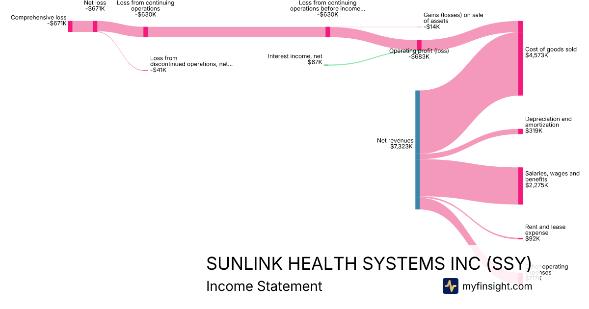 For the quarter ending 2025-03-31, SSY made $7,323K in revenue. -$671K in net income. Net profit margin of -9.16%.