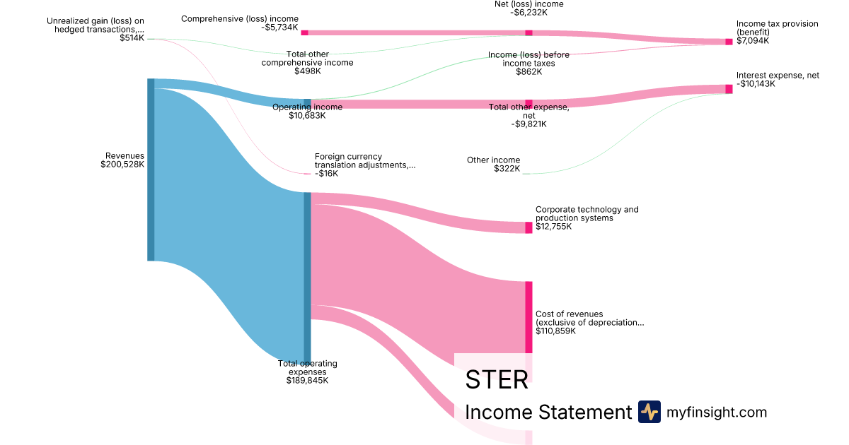 For the quarter ending 2024-06-30, STER made $200,528K in revenue. -$5,734K in net income. Net profit margin of -2.86%.