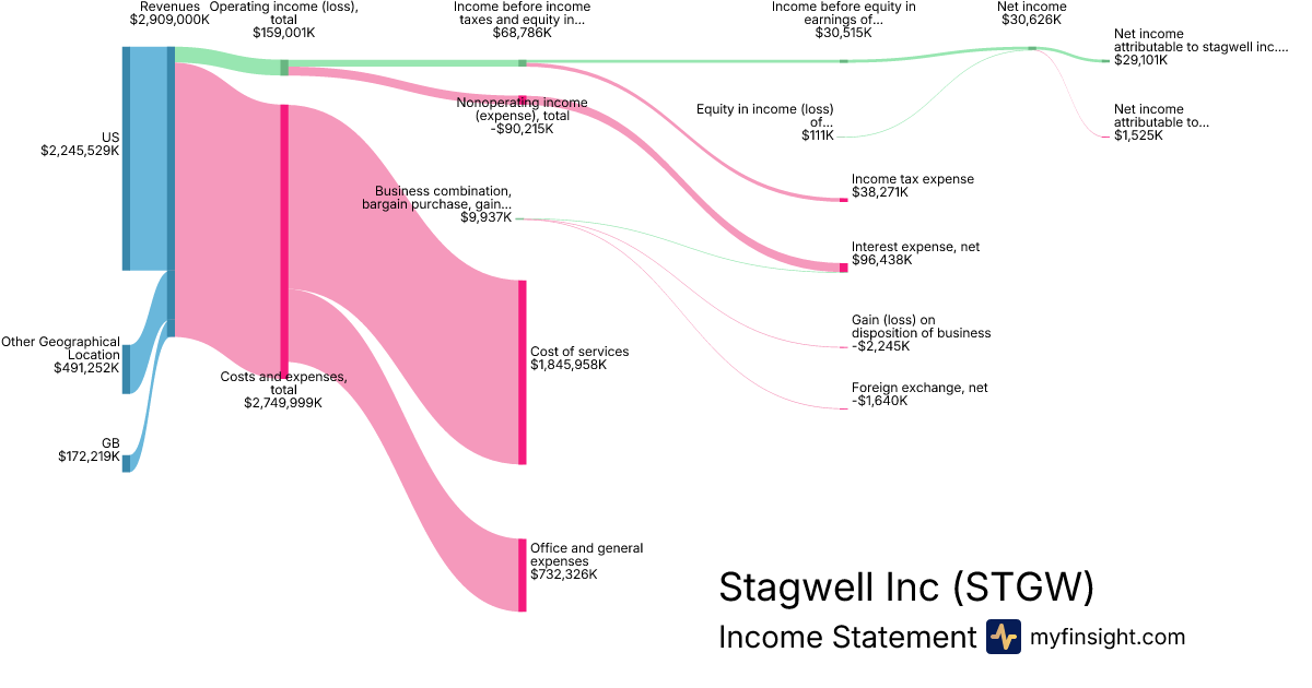 For the year ending 2025-12-31, STGW made $2,909,000K in revenue. $29,101K in net income. Net profit margin of 1.00%.
