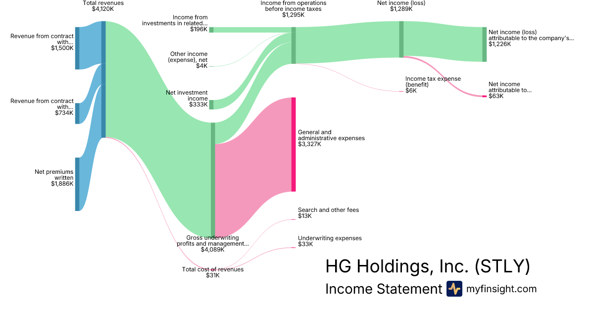 For the quarter ending 2025-09-30, STLY made $4,120,000 in revenue. $1,226,000 in net income. Net profit margin of 29.76%.