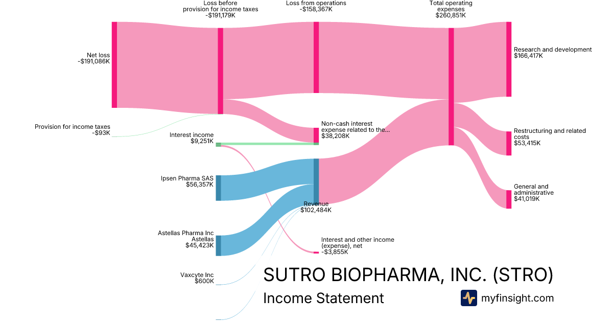 For the year ending 2025-12-31, STRO made $102,484K in revenue. -$191,086K in net income. Net profit margin of -186.45%.