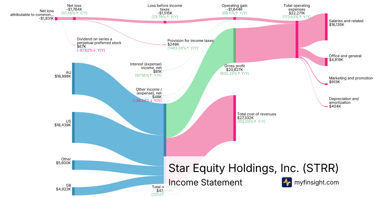 For the quarter ending 2025-09-30, STRR made $47,959K in revenue. -$1,831K in net income. Net profit margin of -3.82%.
