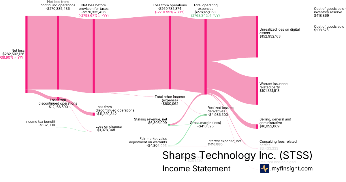 For the year ending 2025-12-31, STSS made $204,120 in revenue. -$282,502,126 in net income. Net profit margin of -138400.02%.