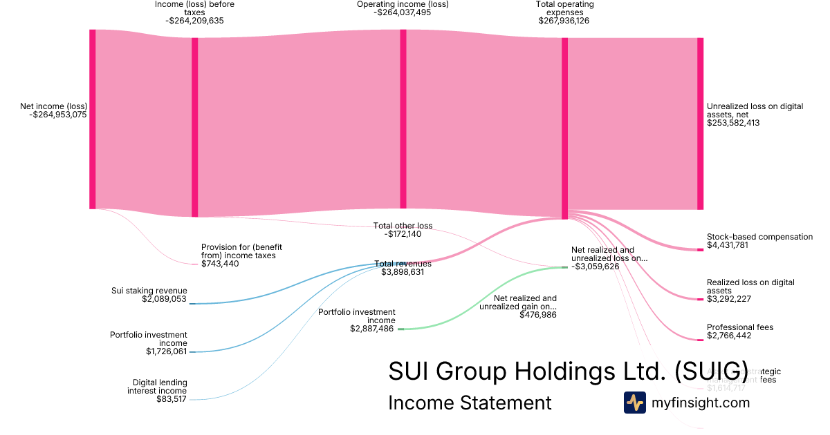 For the year ending 2025-12-31, SUIG made $3,898,631 in revenue. -$264,953,075 in net income. Net profit margin of -6796.05%.