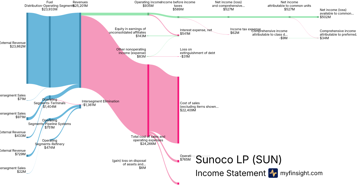 For the year ending 2025-12-31, SUN made $25,201M in revenue. $502M in net income. Net profit margin of 1.99%.