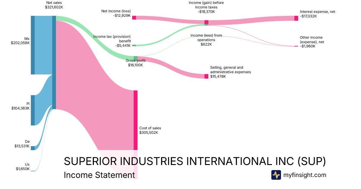 For the quarter ending 2025-03-31, SUP made $321,602K in revenue. -$12,929K in net income. Net profit margin of -4.02%.