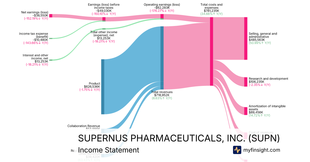 For the year ending 2025-12-31, SUPN made $718,952K in revenue. -$38,550K in net income. Net profit margin of -5.36%.