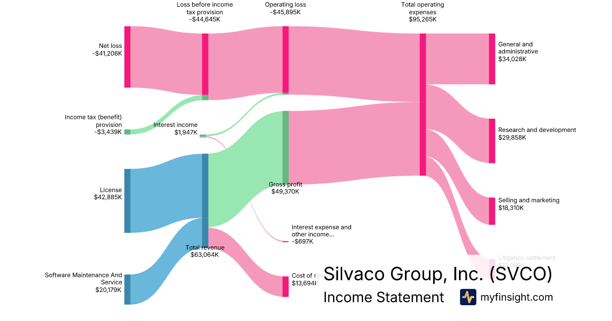 For the year ending 2025-12-31, SVCO made $63,064K in revenue. -$41,206K in net income. Net profit margin of -65.34%.
