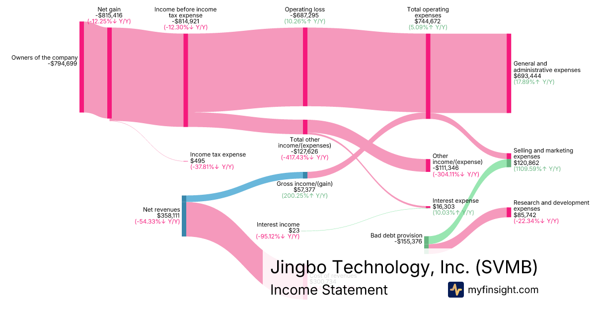 For the quarter ending 2025-11-30, SVMB made $358,111 in revenue. -$794,699 in net income. Net profit margin of -221.91%.