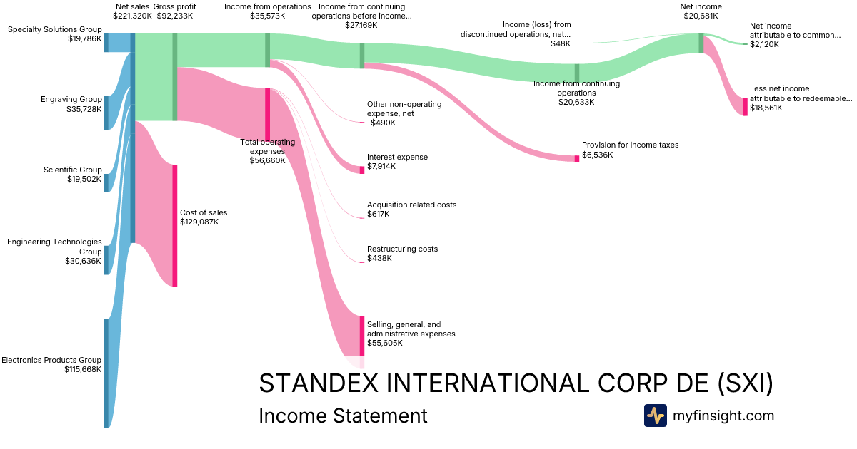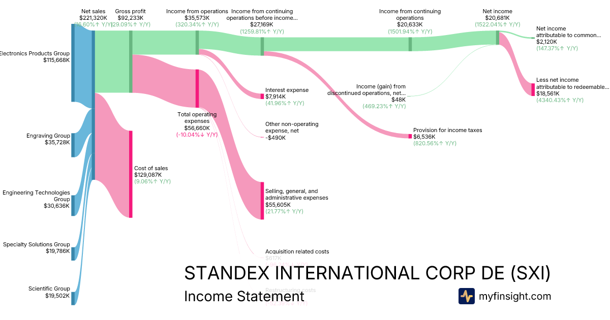 For the quarter ending 2025-12-31, SXI made $221,320K in revenue. $2,120K in net income. Net profit margin of 0.96%.