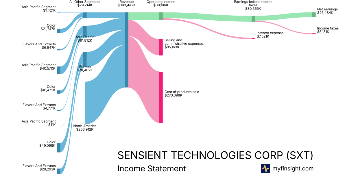 For the year ending 2025-12-31, SXT made $1,612,111K in revenue. $134,489K in net income. Net profit margin of 8.34%.