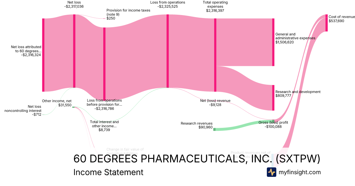For the quarter ending 2025-09-30, SXTPW made $437,602 in revenue. -$2,316,324 in net income. Net profit margin of -529.32%.