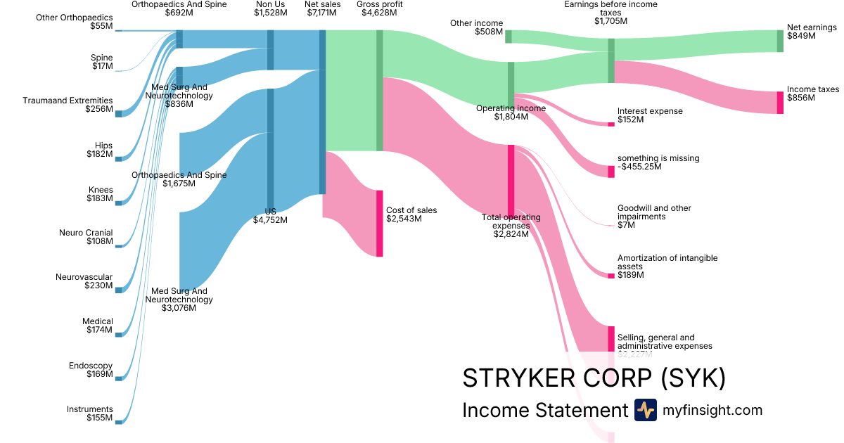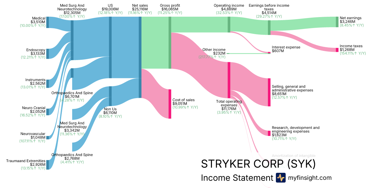 For the year ending 2025-12-31, SYK made $25,116M in revenue. $3,246M in net income. Net profit margin of 12.92%.