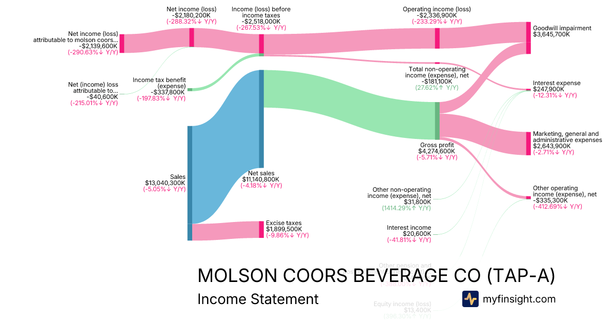 | Net income (loss) attributable to molson coors beverage company | -2,139,600 | 1,122,400 | 948,900 | -175,300 |