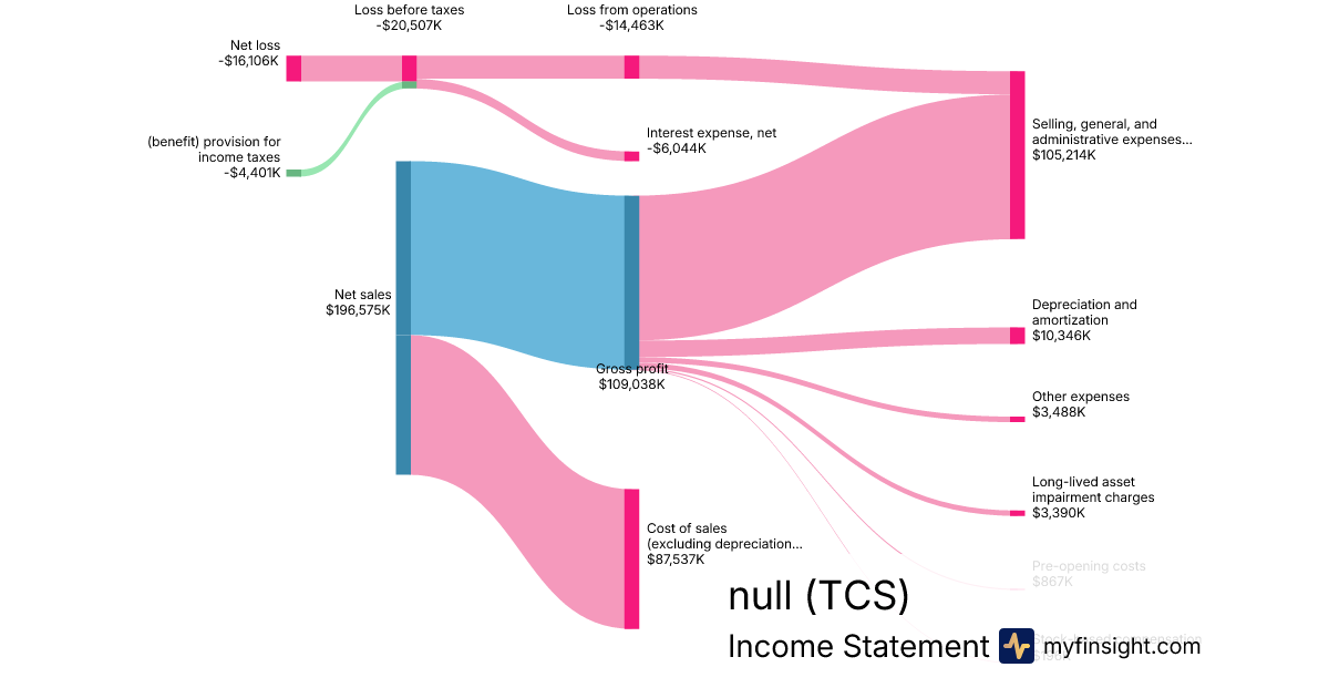 For the quarter ending 2024-09-28, TCS made $196,575K in revenue. -$16,106K in net income. Net profit margin of -8.19%.