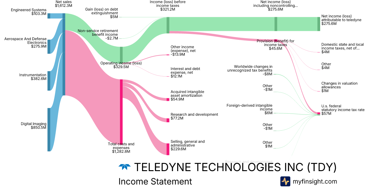 For the year ending 2025-12-28, TDY made $6,115,400K in revenue. $894,800K in net income. Net profit margin of 14.63%.
