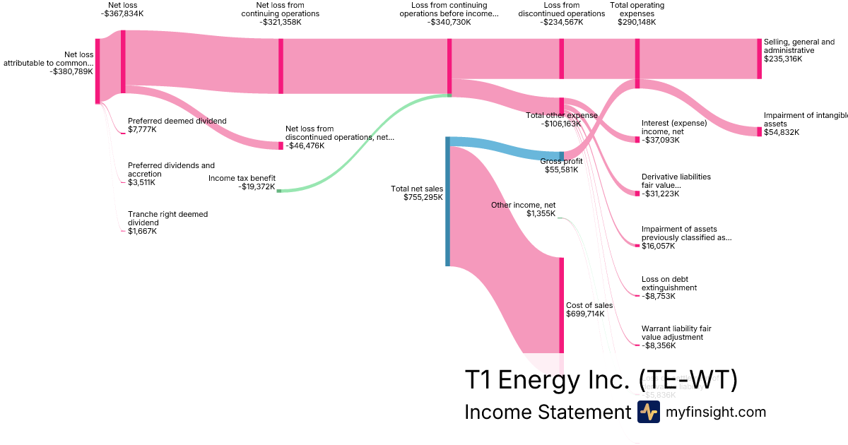 For the year ending 2025-12-31, TE-WT made $755,295K in revenue. -$380,789K in net income. Net profit margin of -50.42%.