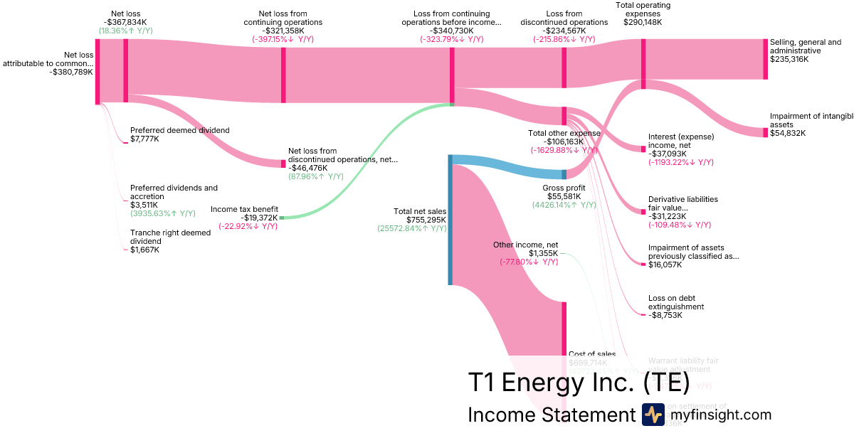 For the year ending 2025-12-31, TE made $755,295K in revenue. -$380,789K in net income. Net profit margin of -50.42%.