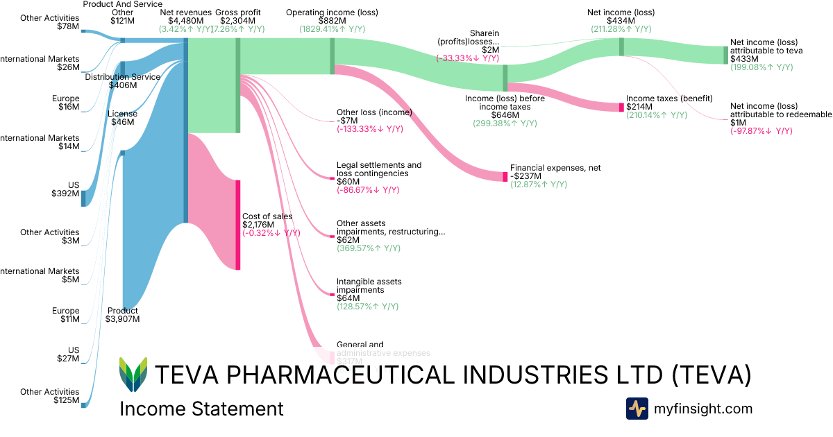 | Net income (loss) attributable to teva | 433 | 282 | 214 | -437 |