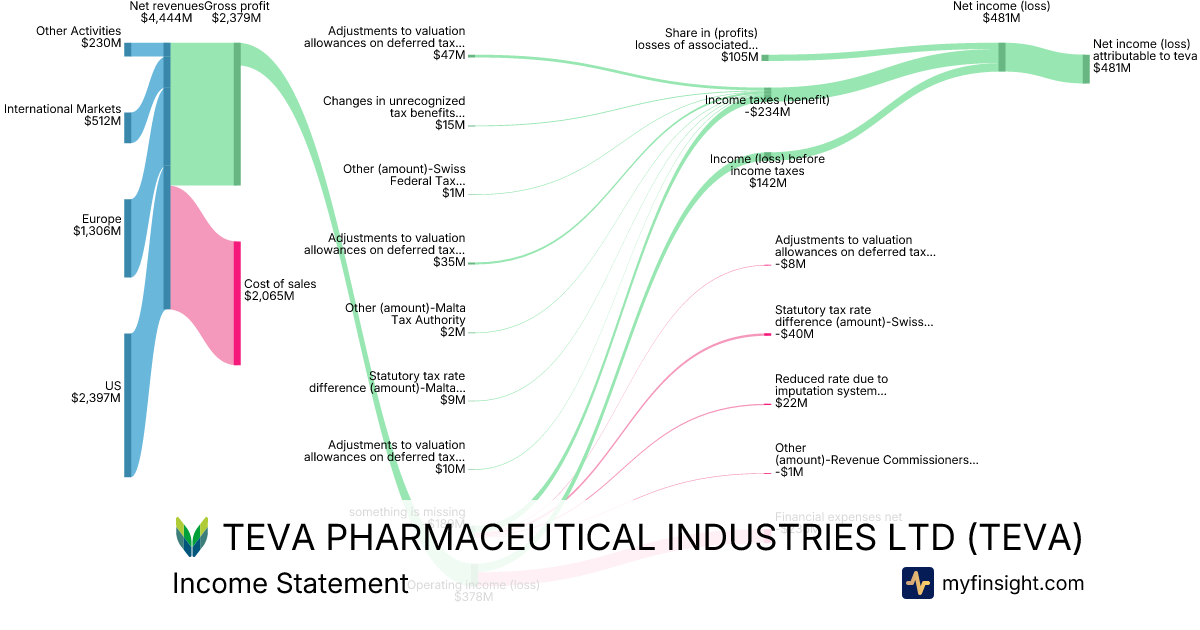 For the year ending 2025-12-31, TEVA made $17,258M in revenue. $1,410M in net income. Net profit margin of 8.17%.