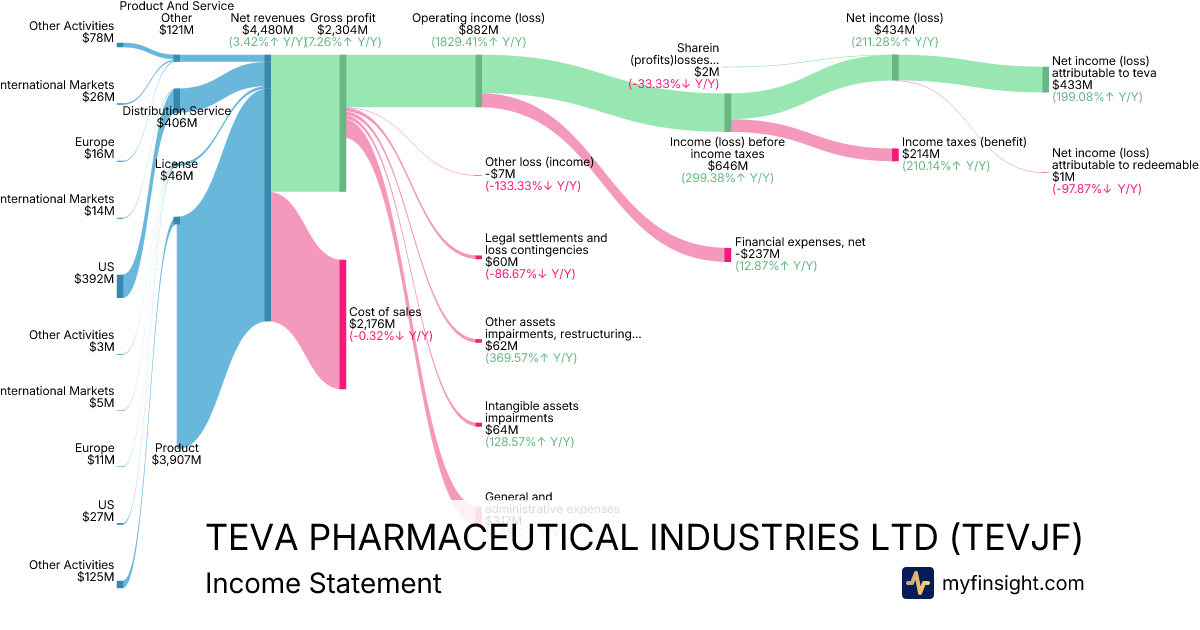 | Net income (loss) attributable to teva | 433 | 282 | 214 | -437 |