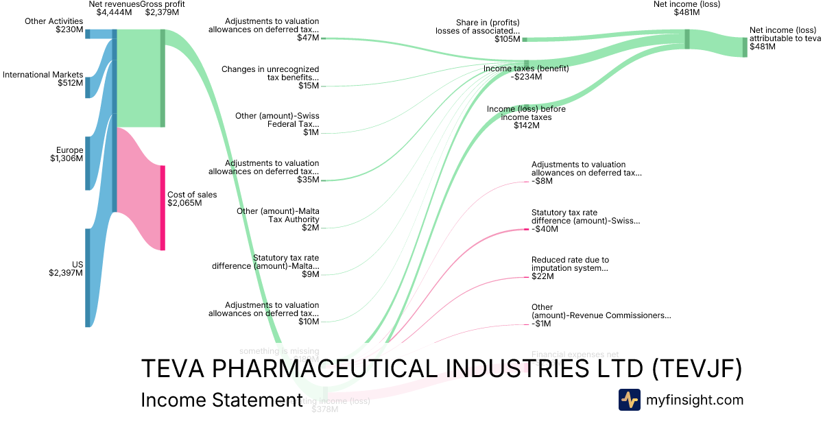 For the year ending 2025-12-31, TEVJF made $17,258M in revenue. $1,410M in net income. Net profit margin of 8.17%.