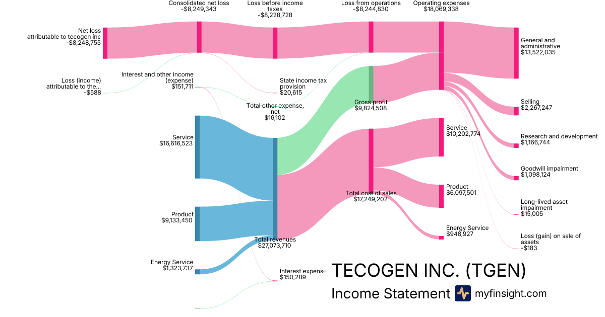 For the year ending 2025-12-31, TGEN made $27,073,710 in revenue. -$8,248,755 in net income. Net profit margin of -30.47%.
