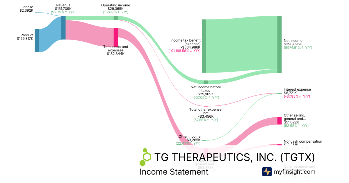 For the quarter ending 2025-09-30, TGTX made $161,709K in revenue. $390,895K in net income. Net profit margin of 241.73%.