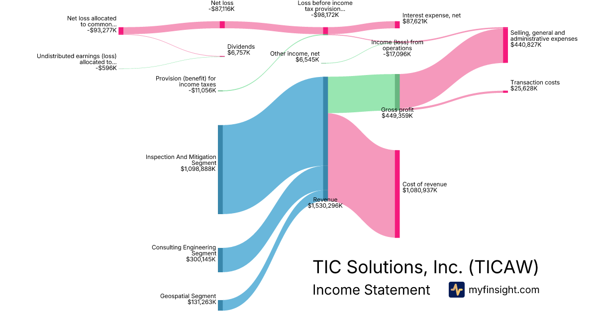 For the year ending 2025-12-31, TICAW made $1,530,296K in revenue. -$93,277K in net income. Net profit margin of -6.10%.