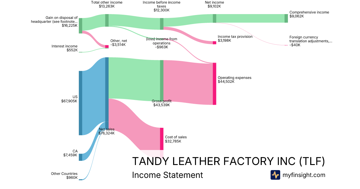 For the year ending 2025-12-31, TLF made $76,324K in revenue. $9,062K in net income. Net profit margin of 11.87%.